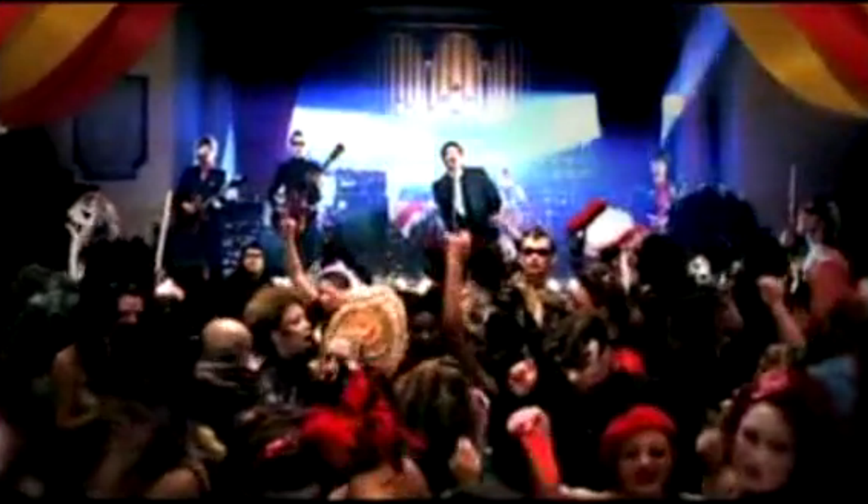 A shot revealing the live audience and the band performing, a typical image of alternative rock videos.